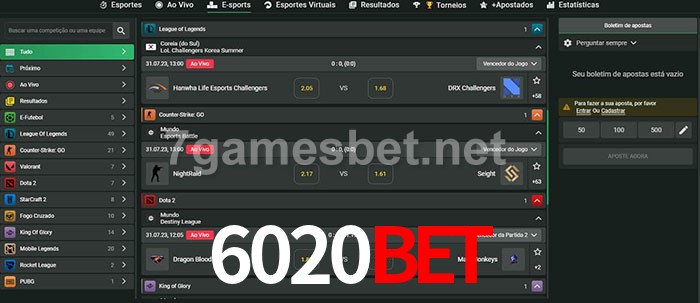 O 6020bet oferece uma grande seleção de opções de apostas em e-sports com probabilidades competitivas